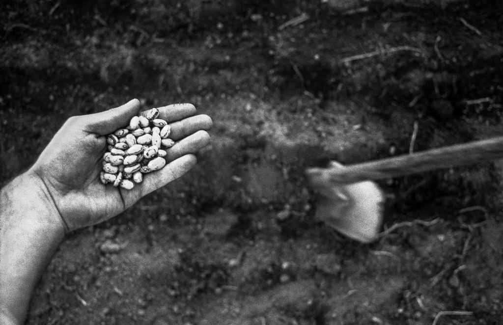 Senhora a ver sementes.