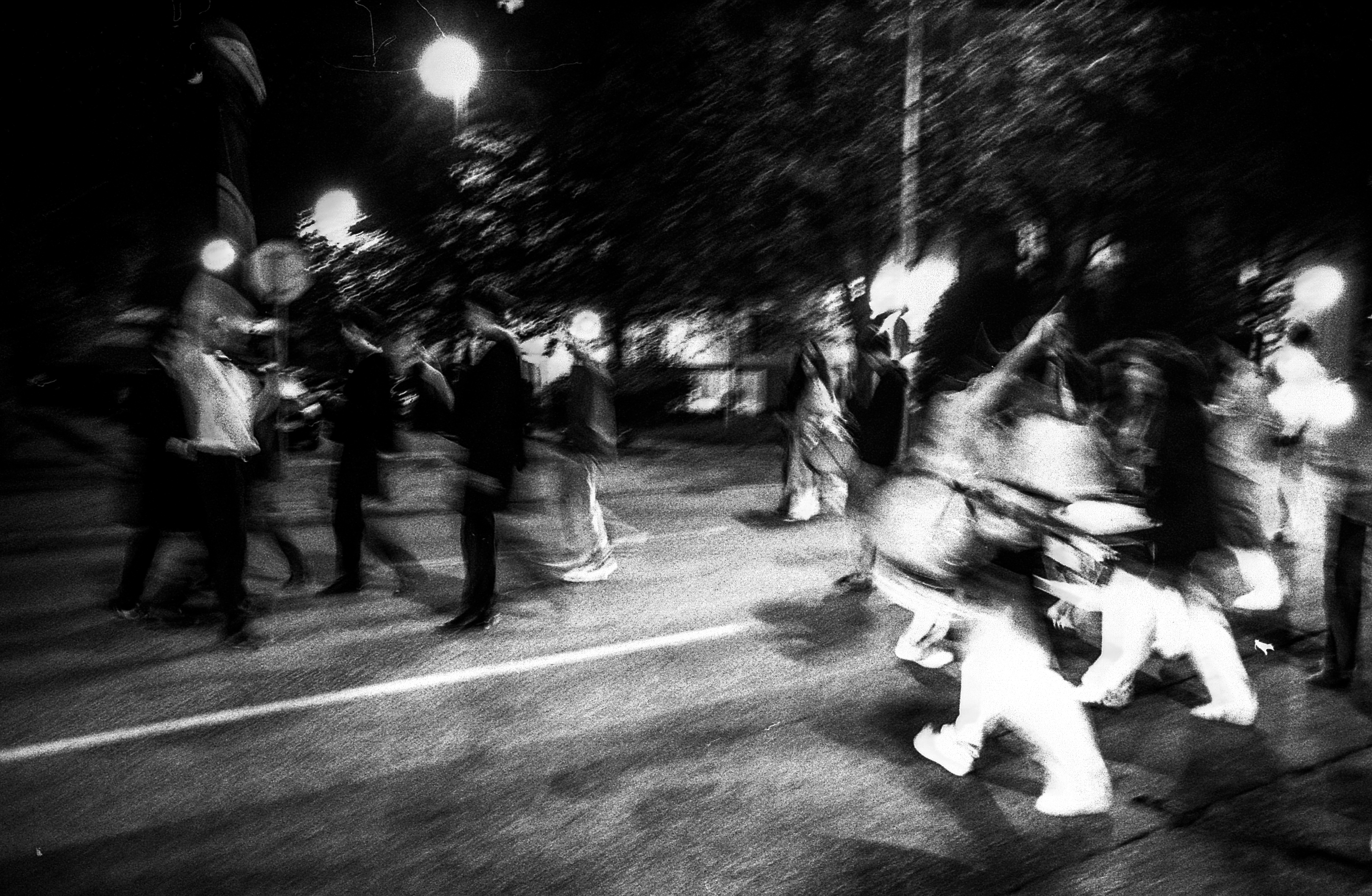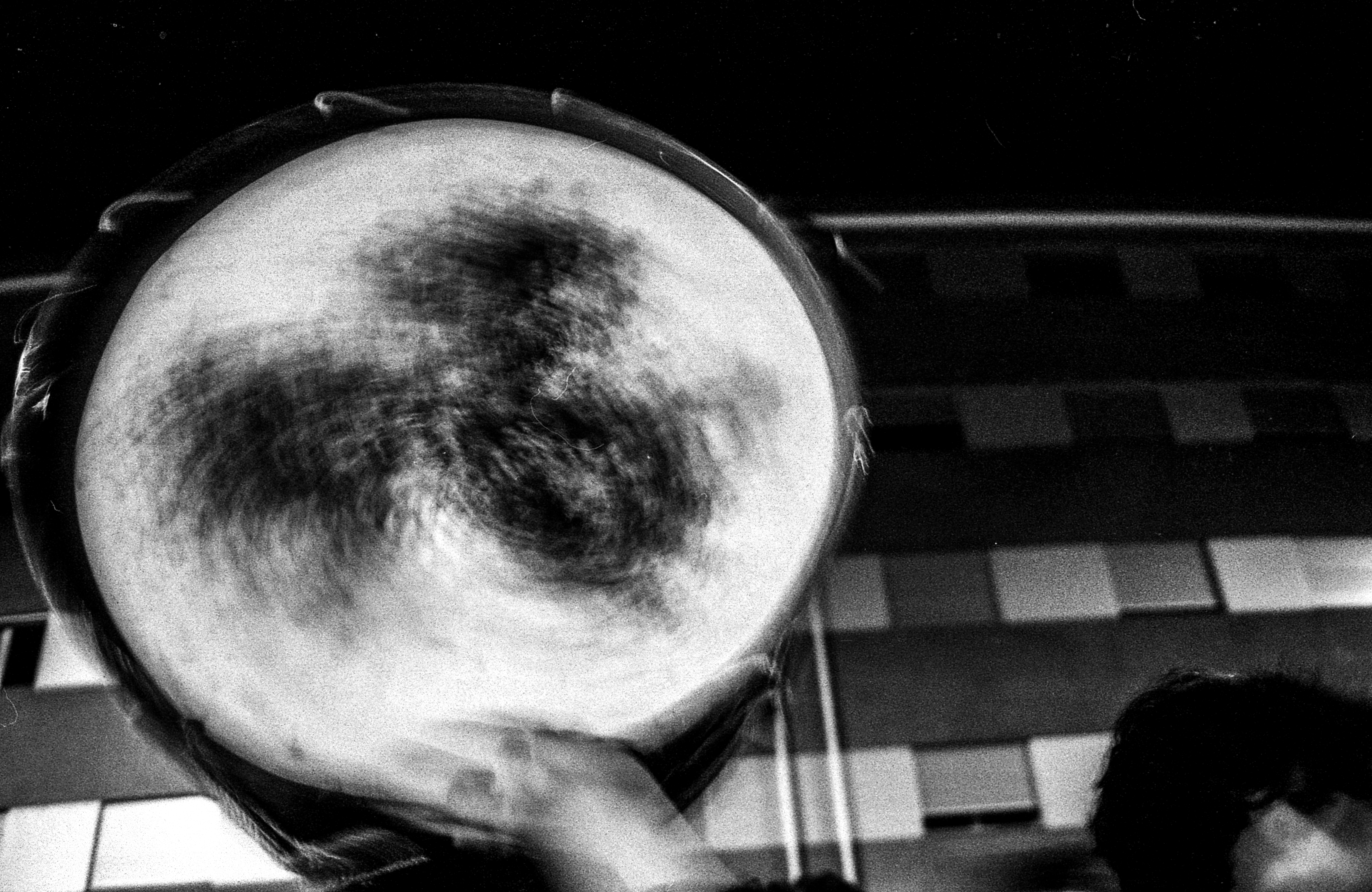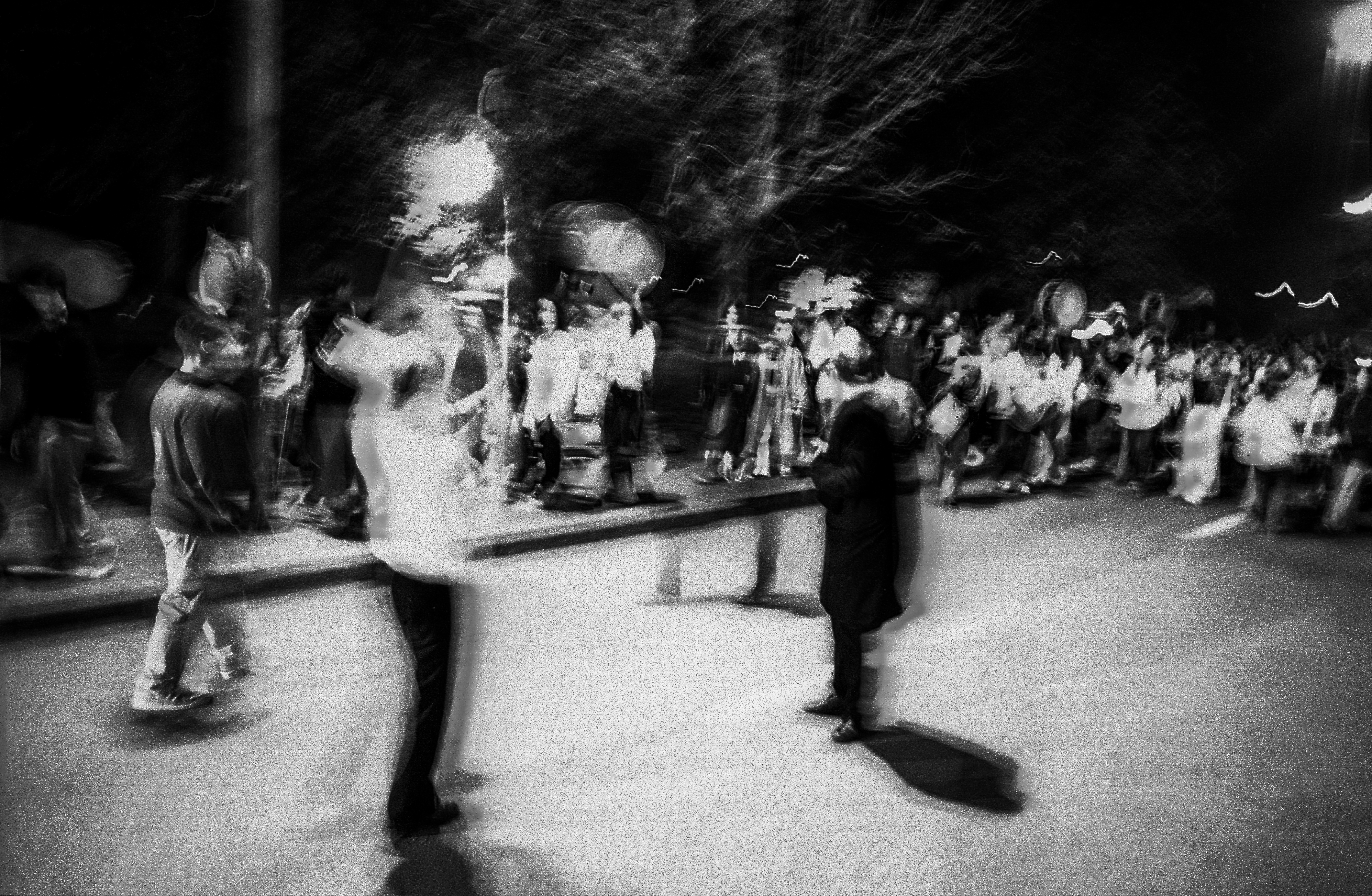 I realized initially that the images I took with the “flash” in 60ths of a second seemed deeply banal to me. I wanted something more expressive of the contagious vibration felt by the bass drums and the precursion boxes.