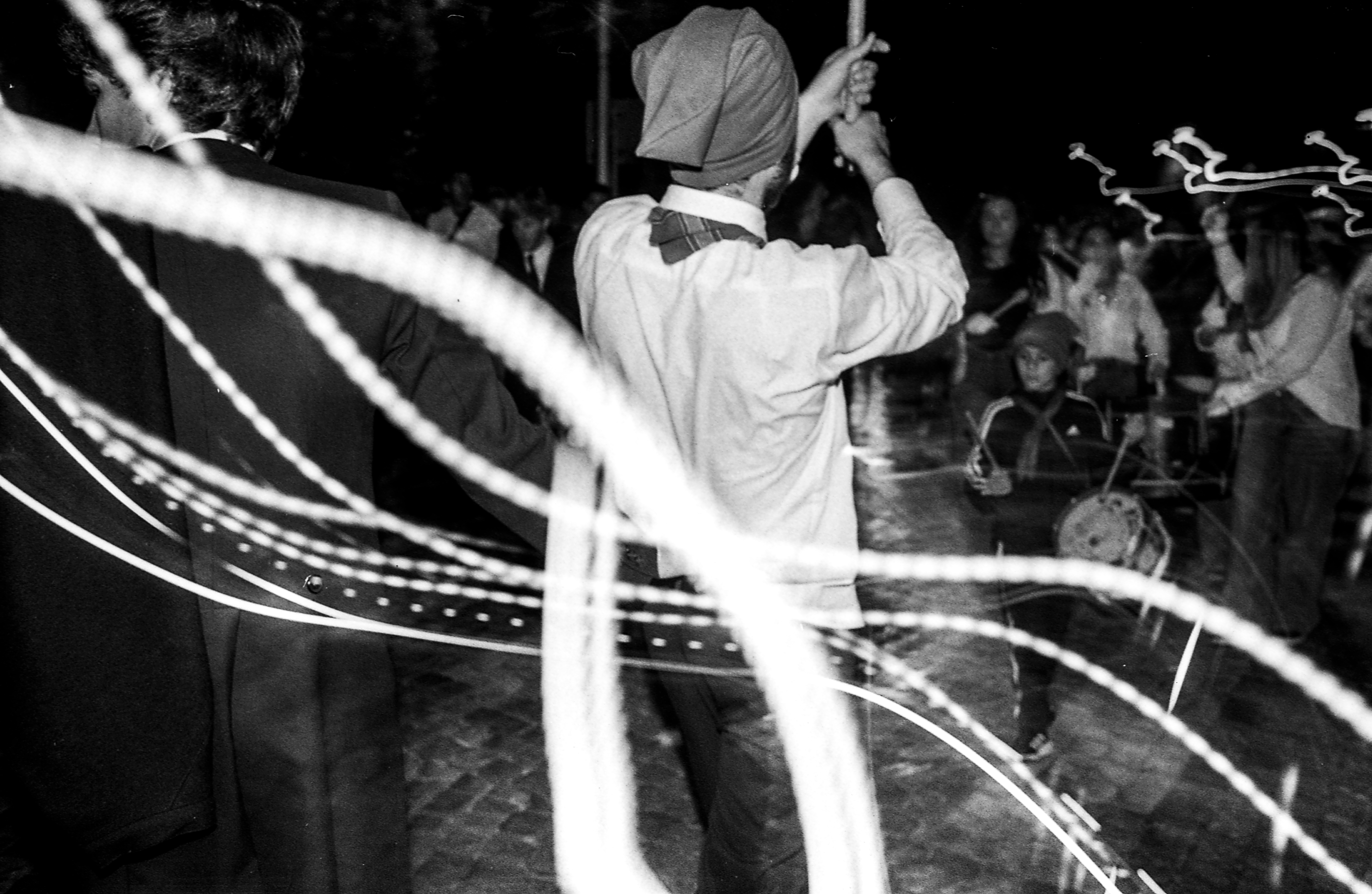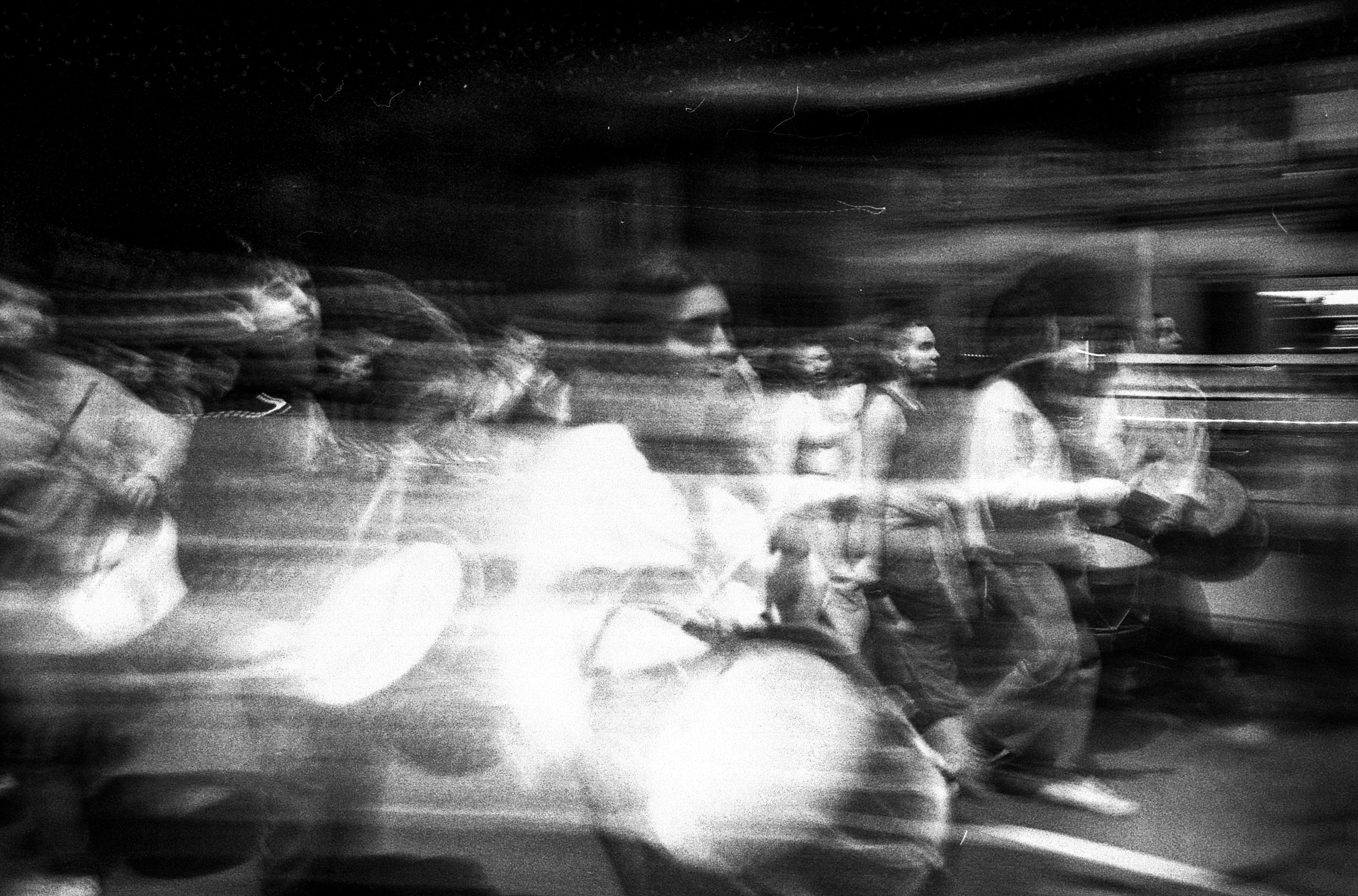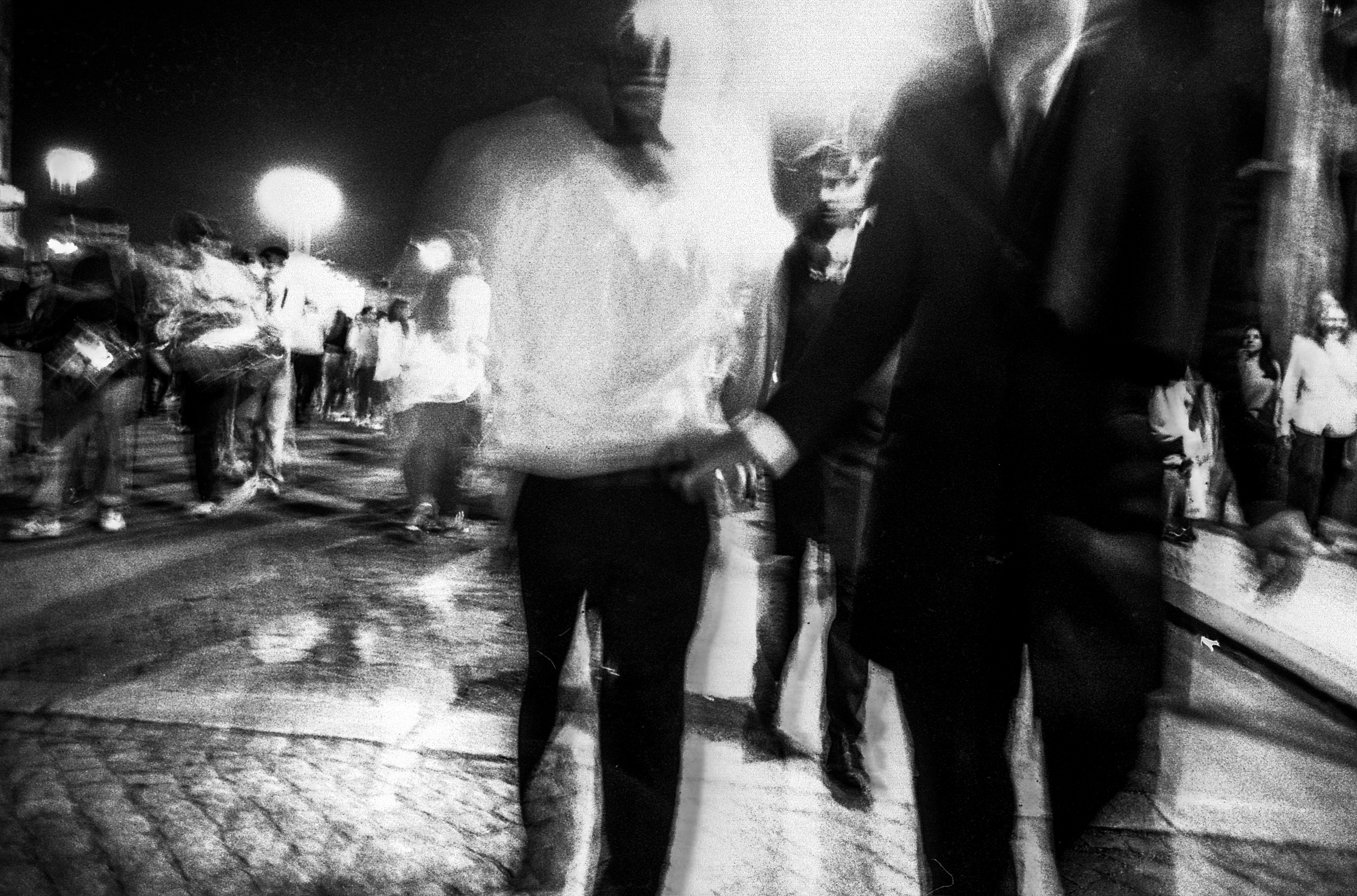 I realized initially that the images I took with the “flash” in 60ths of a second seemed deeply banal to me. I wanted something more expressive of the contagious vibration felt by the bass drums and the precursion boxes.