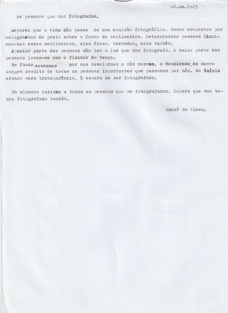 Um sincero carinho a todas as pessoas que me fotografaram. Espero que vos tenha fotografado também.