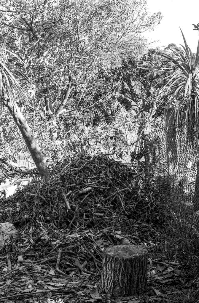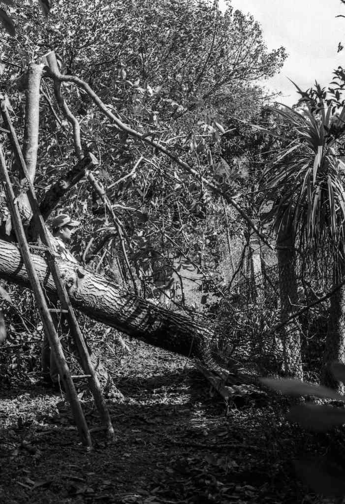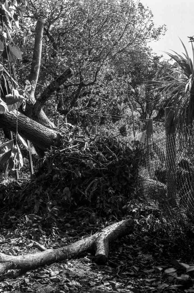 It was important to crack this nut tree for several reasons. Both because it fell on the path that would give access to the field, making the journey to it immensely difficult, and because it fell over the protective wire of a chicken coop.
